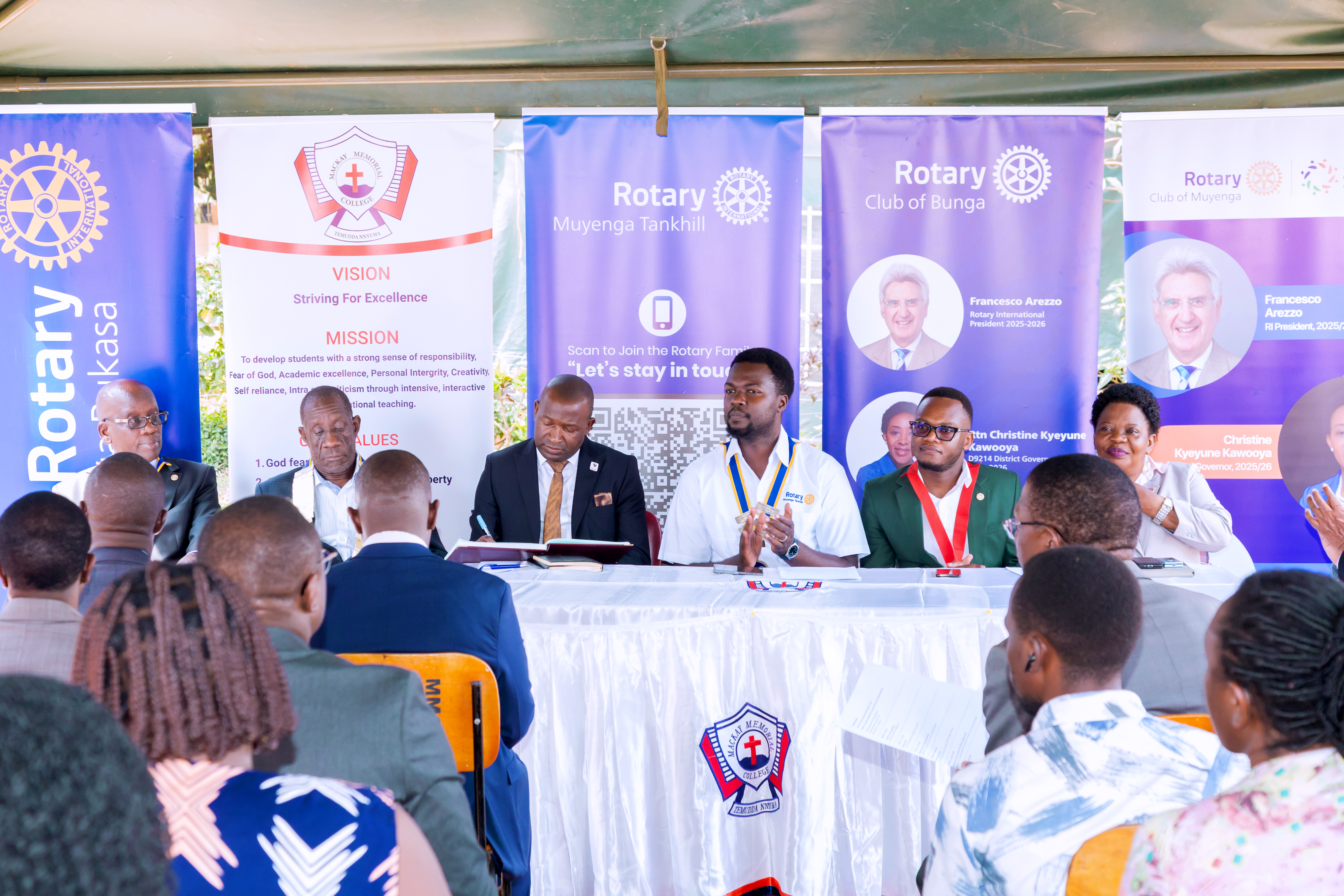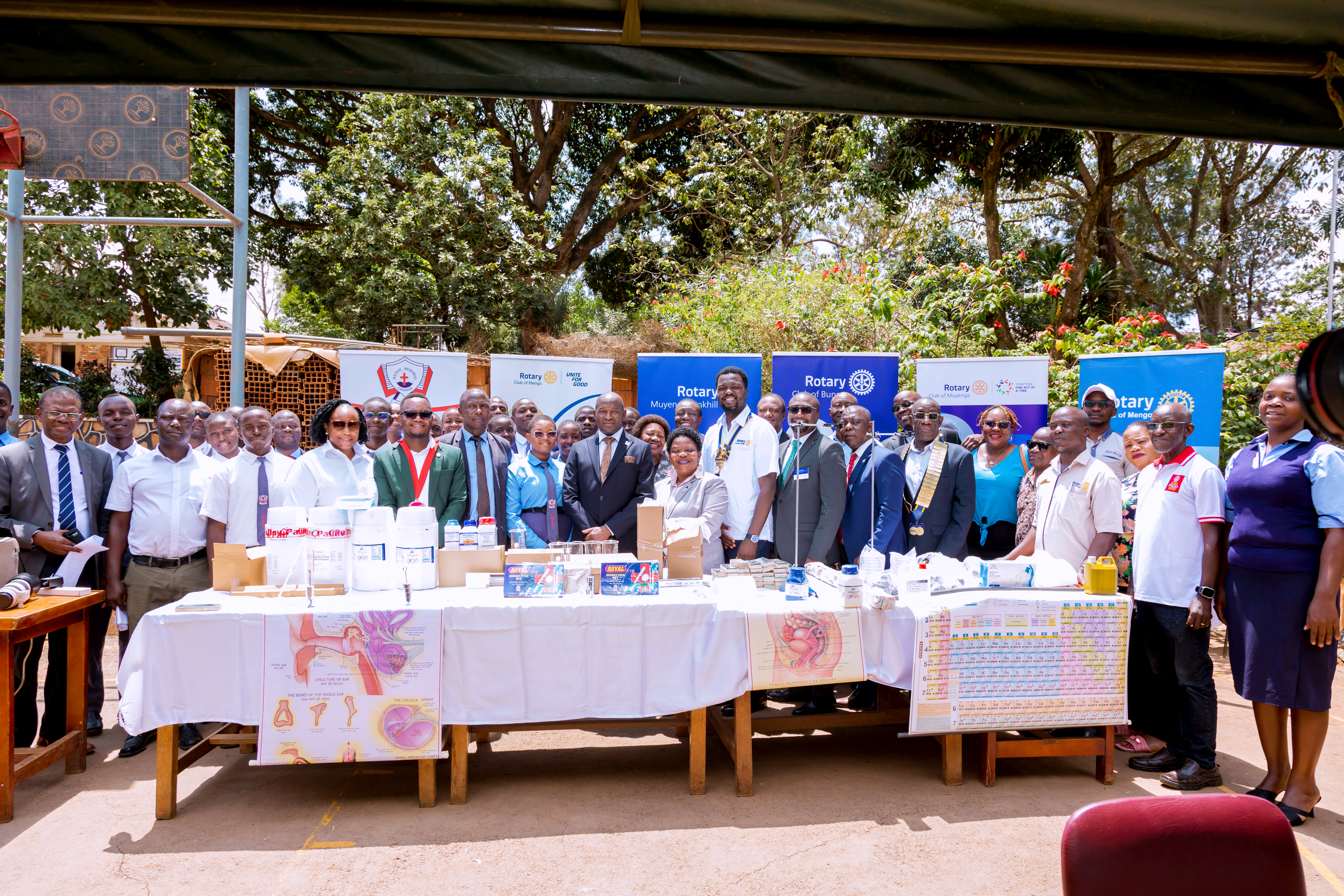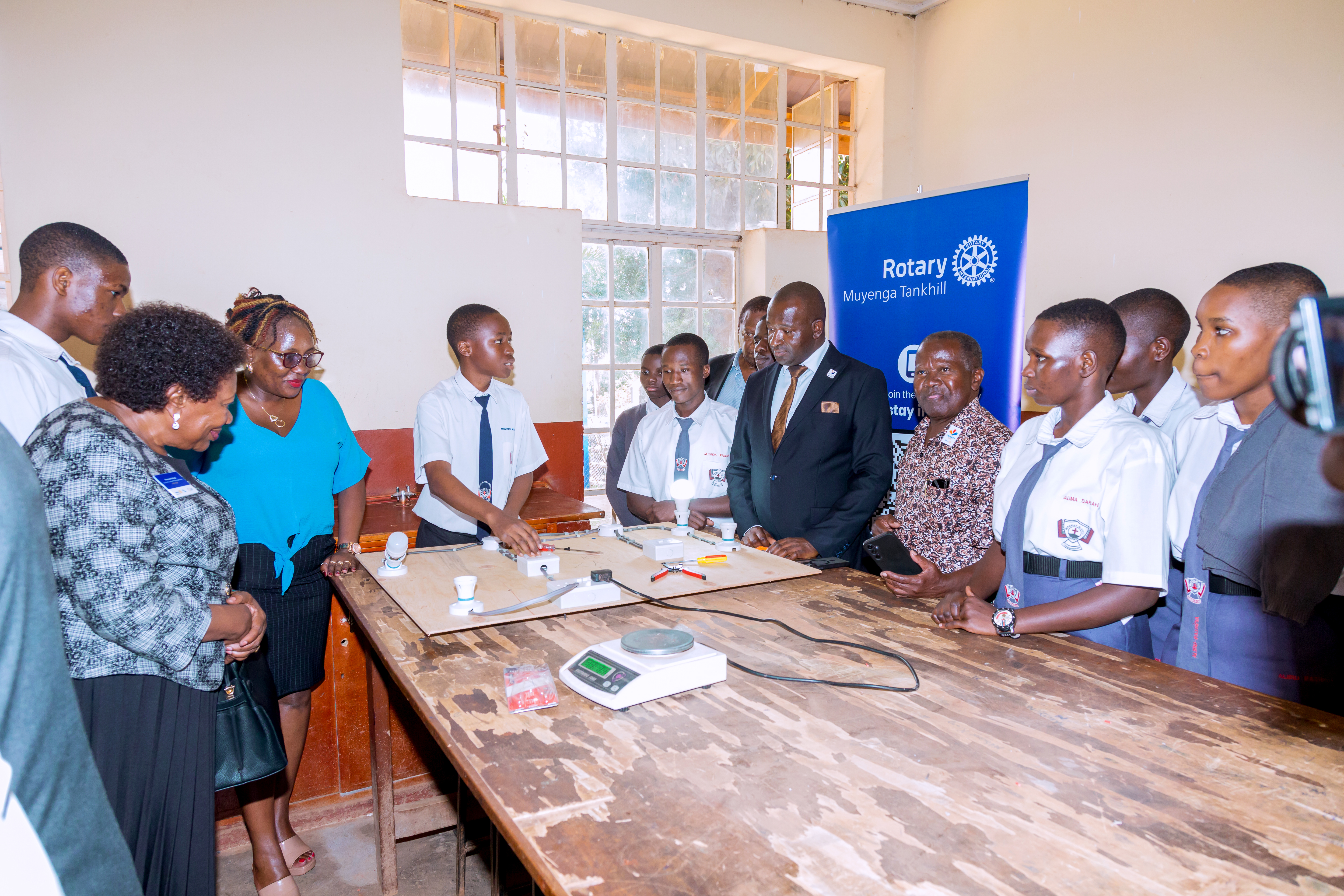 Rotary leaders, teachers, and students gather as the new project is officially unveiled.