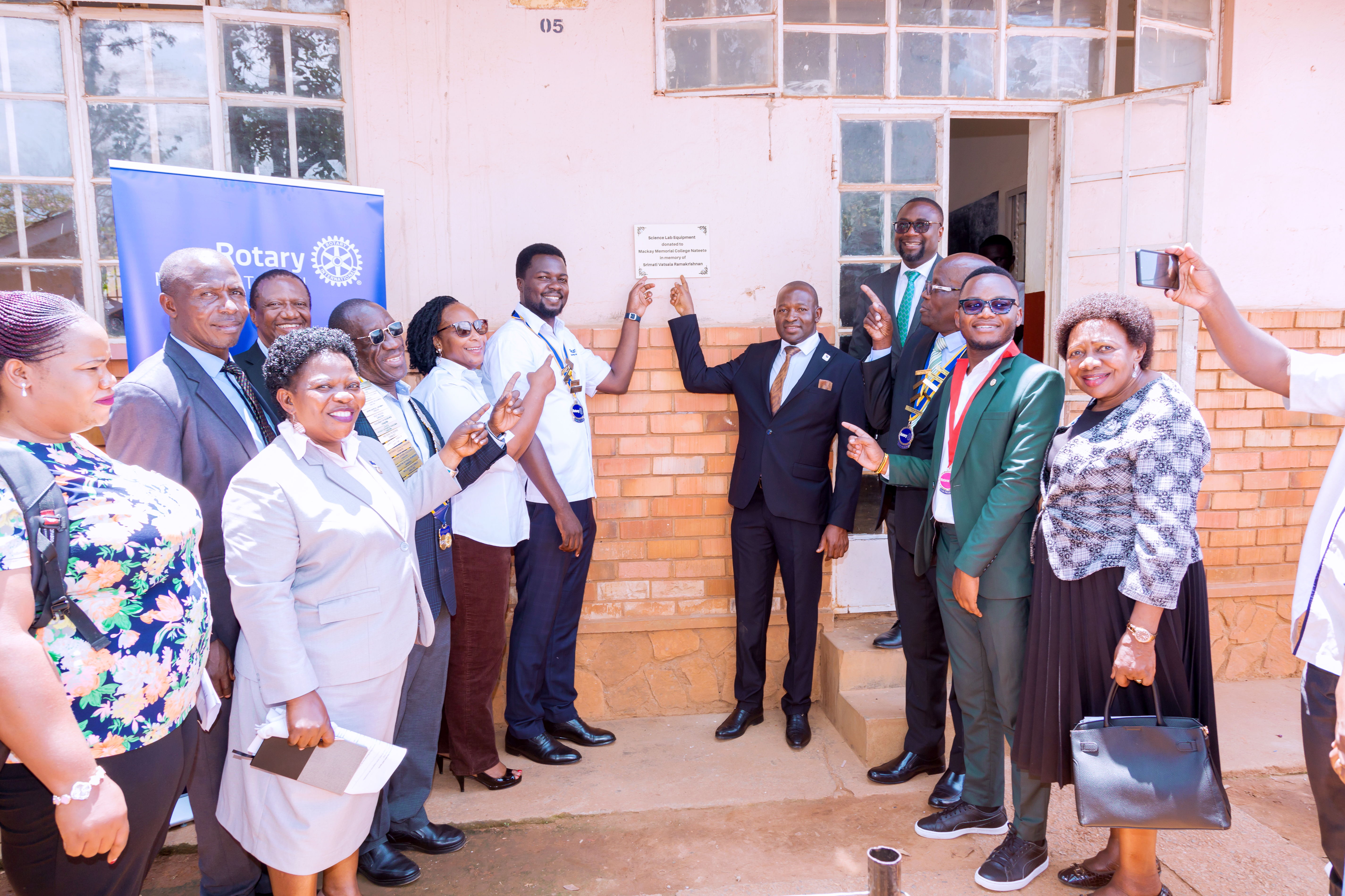 Rotary leaders unveil a plaque at Mackay Memorial College to commemorate the handover.